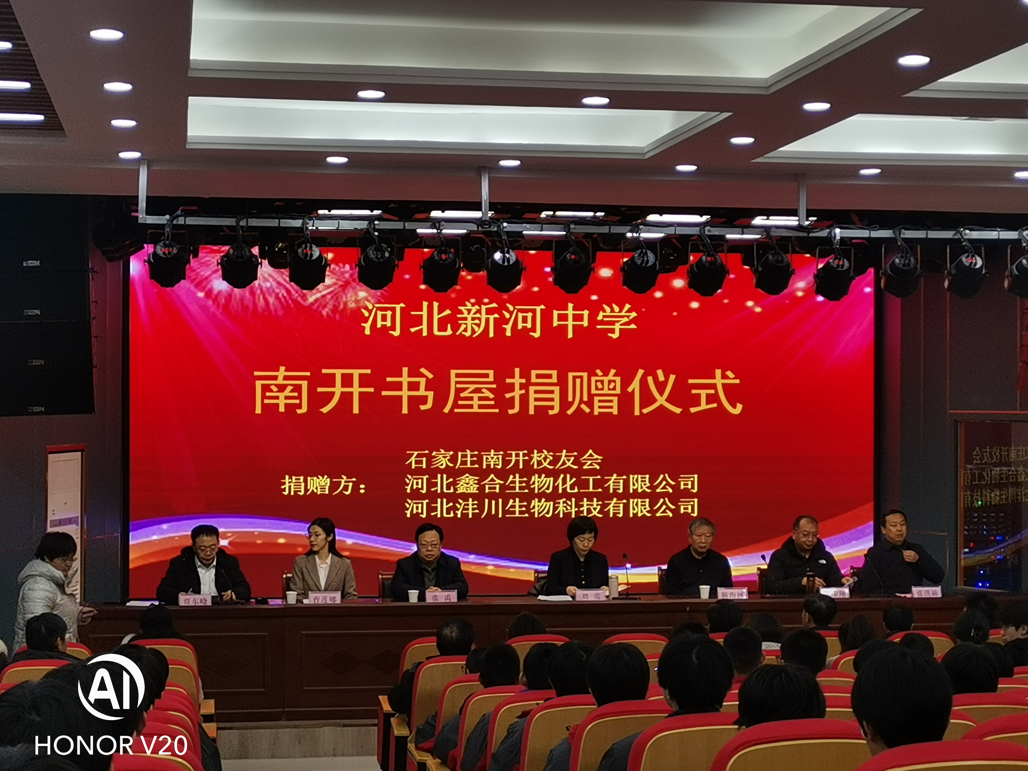 1月17日上午,“書香筑夢·情暖寒冬”圖書捐贈儀式在新河中學(xué)四層報告廳舉行,這是在河北省建成的第六個“南開書屋”。石家莊南開校友會理事長靳海河,常務(wù)副理事長、河北鑫合生物化工有限公司董事長張禹,河北灃川生物科技有限公司總經(jīng)理乞峰輝,2024年南開大學(xué)商學(xué)院領(lǐng)導(dǎo)和赴新河中學(xué)寒假社會實踐隊的同學(xué)們,新河縣政府副縣長劉蕾, 新河縣教育文化廣電體育和旅游局黨組書記、局長吳少翔,新河中學(xué)……